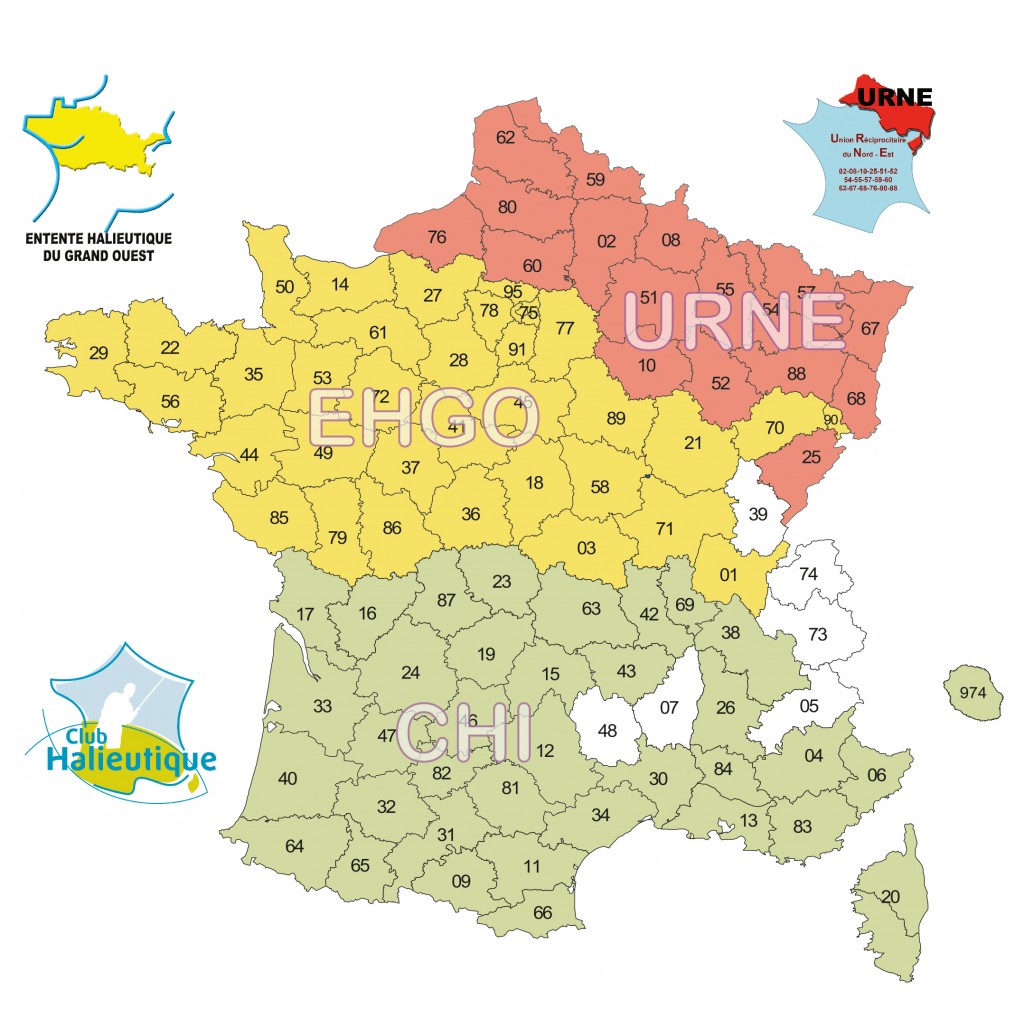 Dans un but de démocratisation du loisir pêche, les départements adhérants au Club Halieutique Interdépartemental (CHI), l’Entente Halieutique du Grand Ouest (EGHO) et  l’Union Réciprocitaire du Nord Est (URNE) se sont unis afin de faciliter l’accès à la pêche des pratiquants de leur territoire.